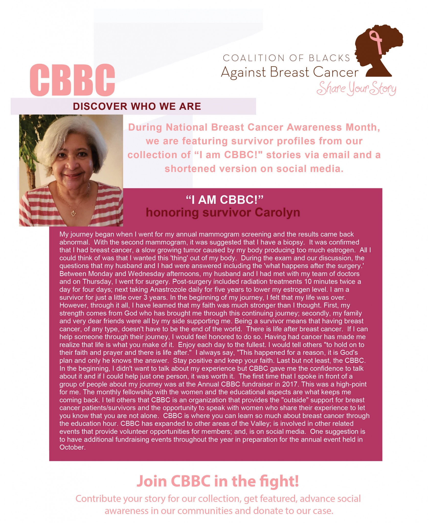 “CBBC gave me the confidence to talk about it and if I could help just one person, it was worth it.” – Carolyn
